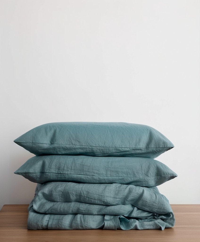 Each duvet cover set is made from 100% linen, pre-washed for softness, with mother-of-pearl button fastenings.