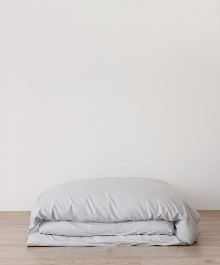 Each duvet cover fastens with mother-of-pearl buttons and is made from 100% linen, pre-washed for softness.